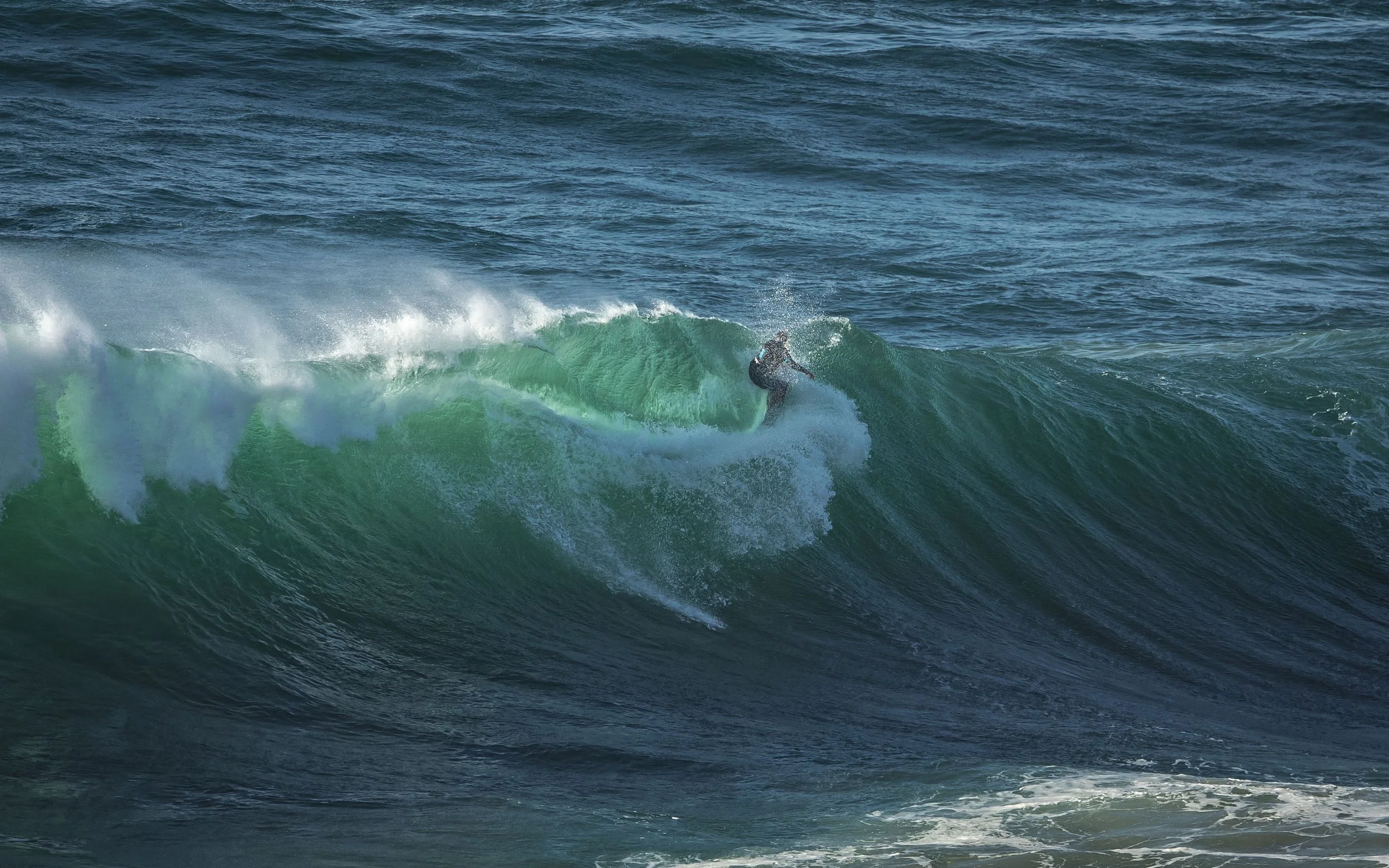 In den Wintermonaten, wenn der Nordatlantik seine volle Energie entfaltet, entstehen am Praia do Norte Wellen, die bis zu 30 Meter hoch werden. Möglich macht das der „Canyon von Nazaré“ – ein mehrere Kilometer tiefer Unterwassergraben, der die Kraft des Meeres bündelt und direkt an die Küste lenkt. Das Ergebnis ist ein spektakuläres Zusammenspiel von Wasser, Licht und unbändiger Naturgewalt.